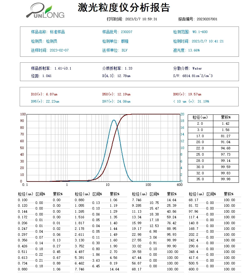 統計方式 | 體積分布和數量分布,以滿足不同行業對于粒度分布的不同統計方式 | |
