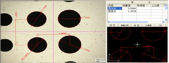 對(duì)比功能:程式可直接輸入.DXF文件,在影像測(cè)量區(qū)實(shí)現(xiàn)工件實(shí)物放大影像與標(biāo)準(zhǔn)設(shè)計(jì)圖作直觀的測(cè)量比對(duì)。