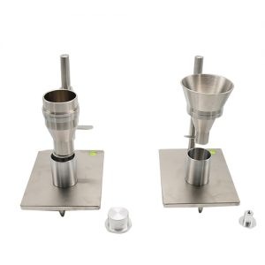 原理:在規定條件下,將試樣從一個具有規定形狀的漏斗中漏下,裝滿一個已知容積的受容器后,測定此粉體的質量。