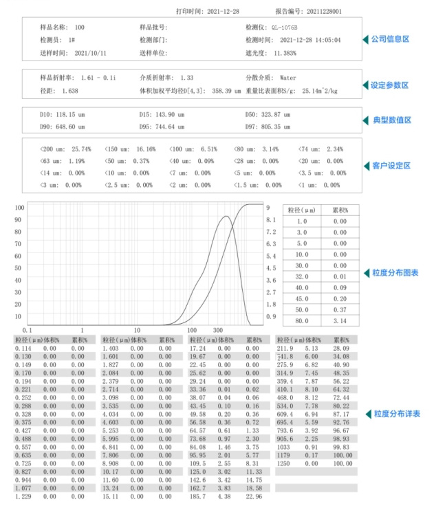 顯示模板 | 粒徑區間求百分比,以滿足不同行業對粒度測試的表征方式。徑距、一致性、區間累積等等 |
