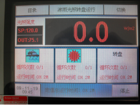 屏幕顯示:輻照度:設定溫濕度;實測溫濕度;