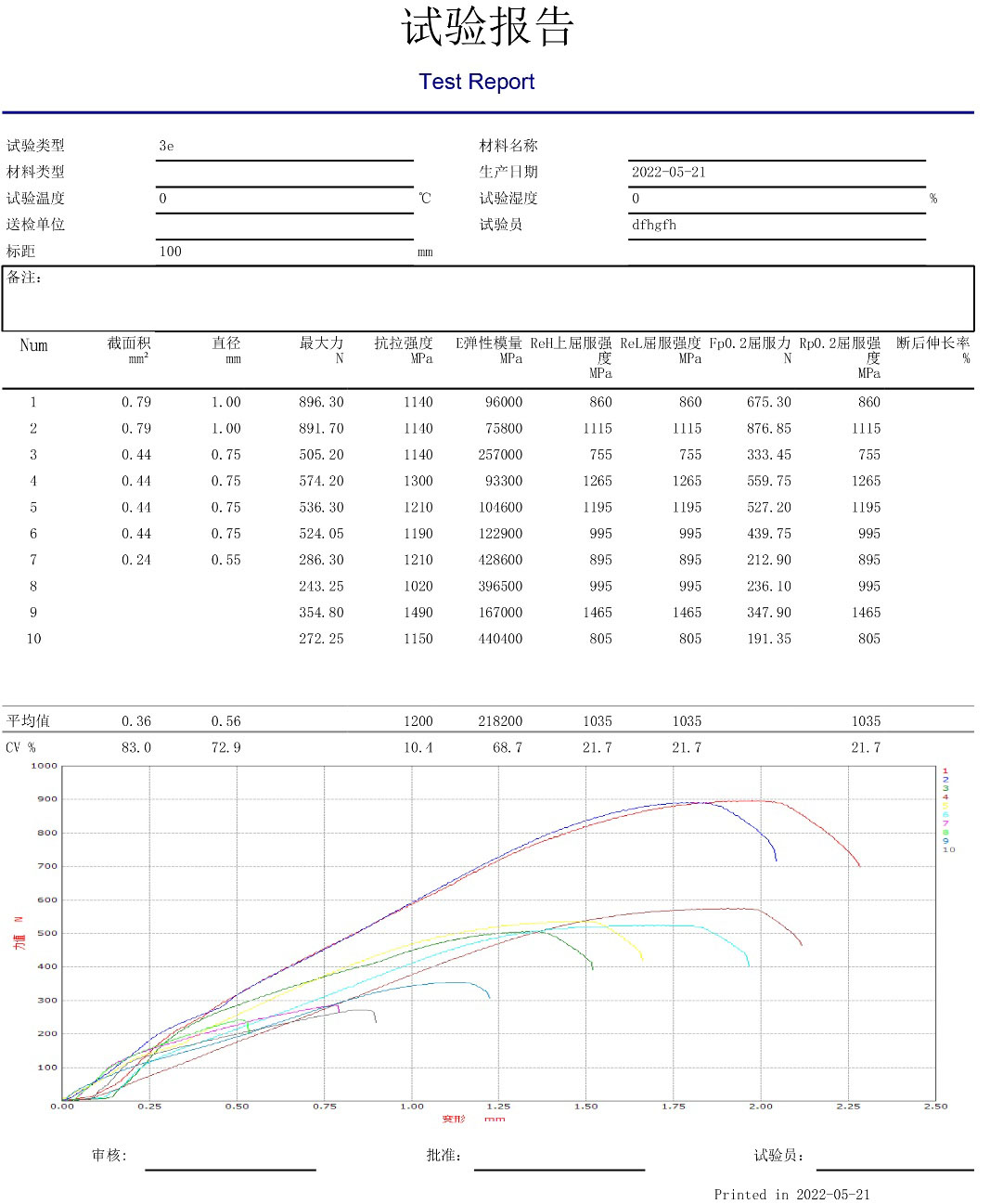- 測試結(jié)束可自動存檔、手動存檔,測試完畢自動求算最大力量、上、下屈服強度、滯后環(huán)法、逐步逼近法、非比例延伸強度、抗拉強度、抗壓強度、任意點定伸長強度、任意點定負荷延伸、彈性模量、延伸率、剝離區(qū)間最大值、最小值、平均值、凈能量、折返能量、總能量、彎曲模量、斷點位移 x%荷重、斷點荷重 X%位移、等等。 數(shù)據(jù)備份:測試數(shù)據(jù)可保存在任意硬盤分區(qū)。