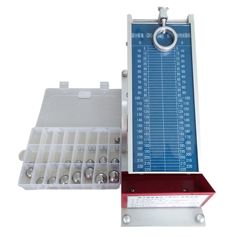 采用斜面滾球法,通過鋼球和測試試樣粘性面之間以微小壓力發(fā)生短暫接觸時,膠粘帶、標簽等產(chǎn)品對鋼球的附著力作用來測試試樣初粘性。